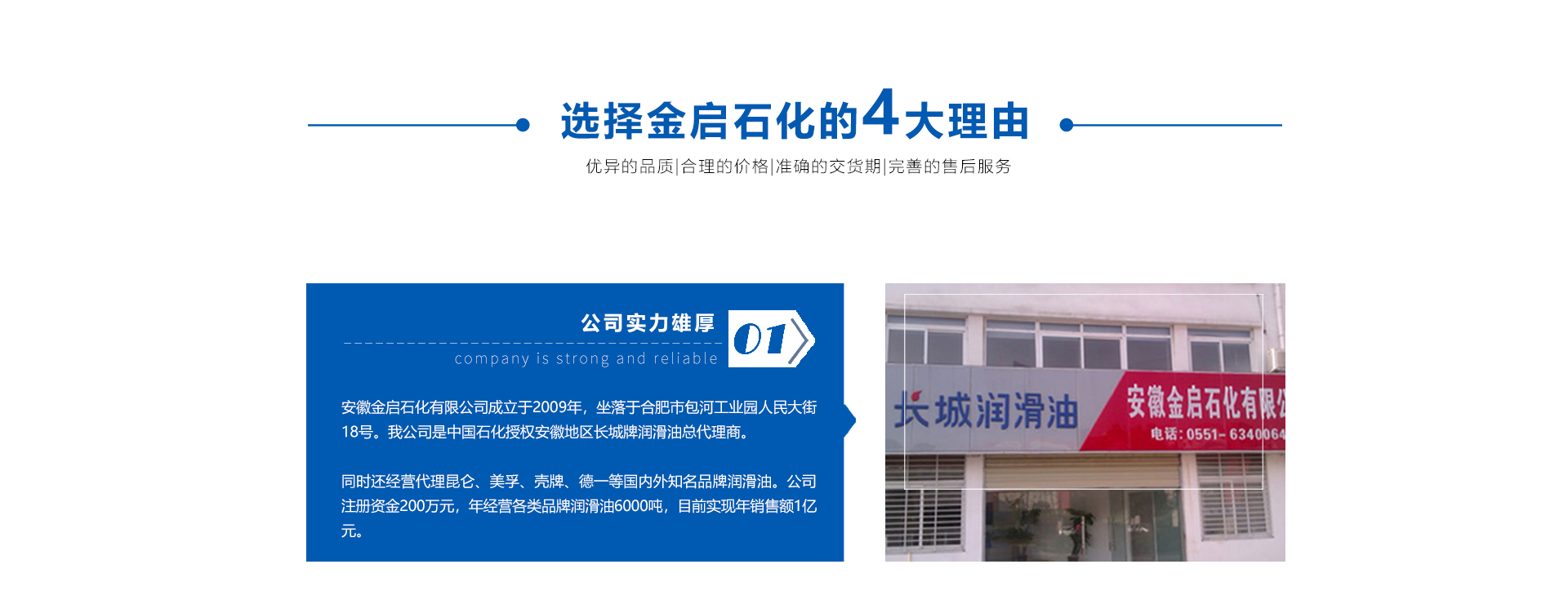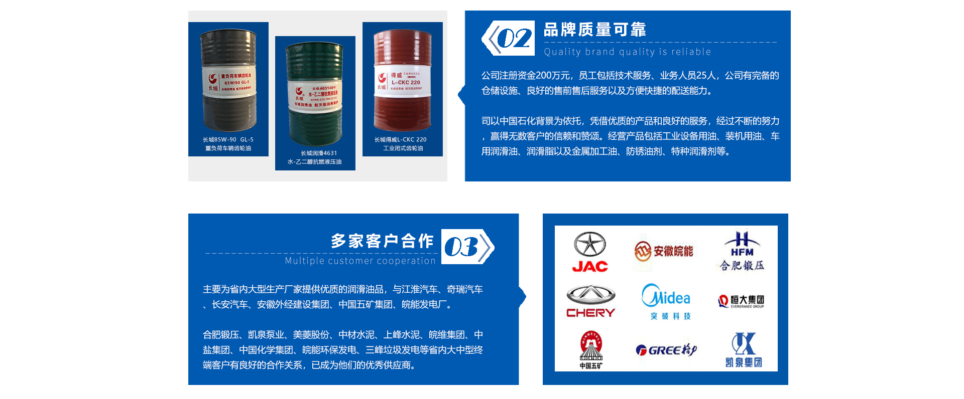 安徽金啟石化有限公司成立于2009年,坐落于合肥市包河工業(yè)園人民大街18號。我公司是中國石化授權安徽地區(qū)長城牌潤滑油總代理商。同時還經(jīng)營代理昆侖、美孚、殼牌、德一等國內(nèi)外品牌潤滑油。公司注冊資金200萬元,員工包括技術服務、業(yè)務人員25人,公司有完備的倉儲設施、良好的售前售后服務以及方便快捷的配送能力。年經(jīng)營各類品牌潤滑油6000噸,目前實現(xiàn)年銷售額1億元。 公司以中國石化背景為依托,憑借好的產(chǎn)品和良好的服務,經(jīng)過不斷的努力,贏得無數(shù)客戶的信賴和贊頌。經(jīng)營產(chǎn)品包括工業(yè)設備用油、裝機用油、車用潤滑油、潤滑脂以及金屬加工油、防銹油劑、特種潤滑劑及表面處理劑、清洗劑等,服務于汽車、電力、工程...